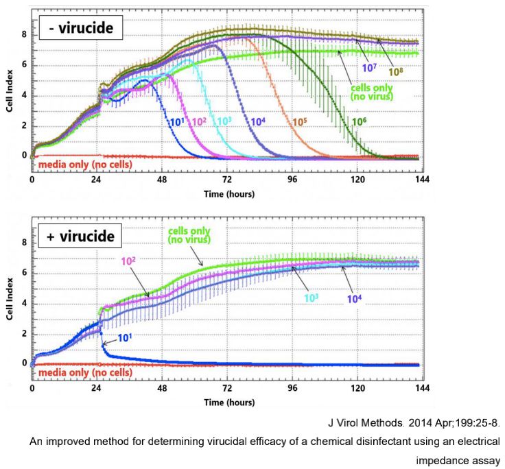 4. An improved method for determining virucidal efficacy of a chemical disinfectant using an electrical impedance assay. J Virol Methods. 2014 Apr;199:25-8.